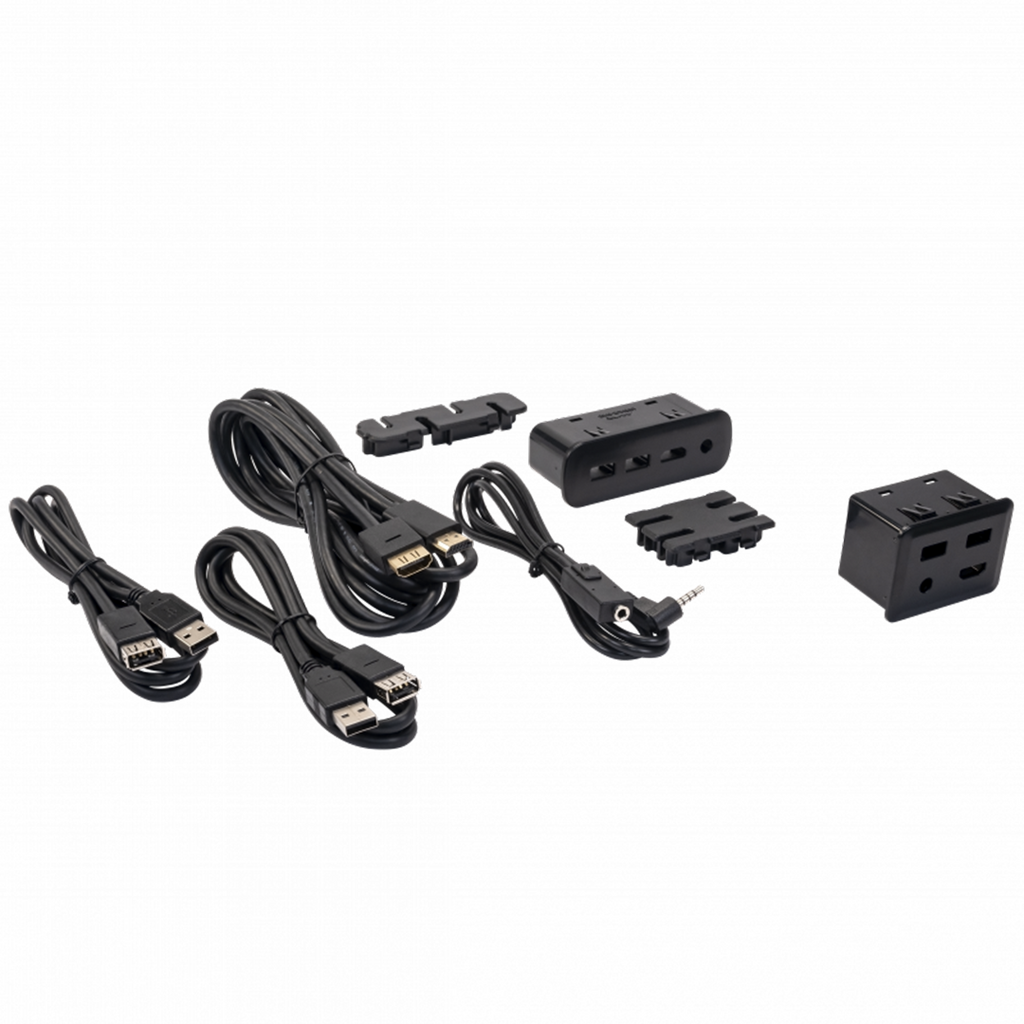 This complete kit includes 4, 4-foot cables; two USB extension cables, an HDMI extension, and a 3.5mm aux extension cable to connect to your new head unit. They snap into a universal hub that can be installed into any vehicle.